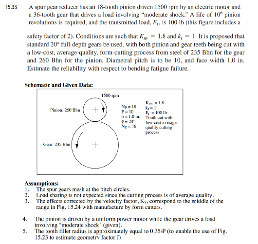 Solved 15.33 A spur gear reducer has an 18tooth pinion
